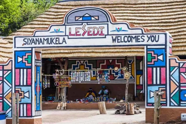 Lesedi Cultural Village is a tourist village that celebrates the cultural traditions of several different cultures of South Africa. It reproduces traditional dwellings and offers exhibitions of dances and other cultural activities. It is situated near Johannesburg, within the Cradle of Humankind, in Gauteng, South Africa. On arrival, guests are welcomed in a traditional African way. Lesedi Cultural Village is a living South African village where families from five major cultures (Zulu, Xhosa, Pedi, Basotho, and Ndebele) actually live. When you visit, you join a guided tour through their different homesteads, see how people live day-to-day, and then watch a big, energetic dance show with drumming and singing. You can also enjoy a big buffet of local food.